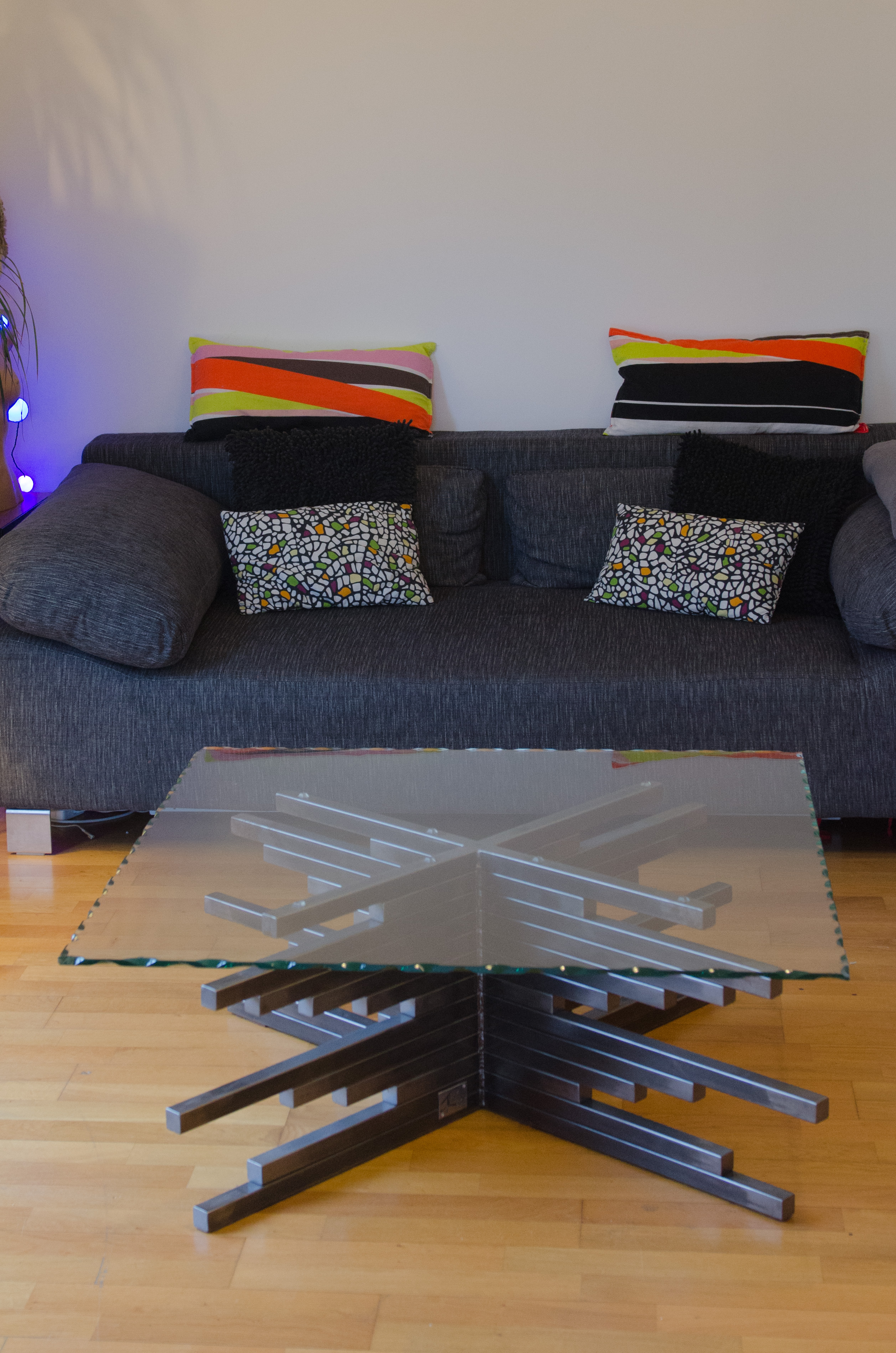 Table basse en acier brut réalisée sur mesure.