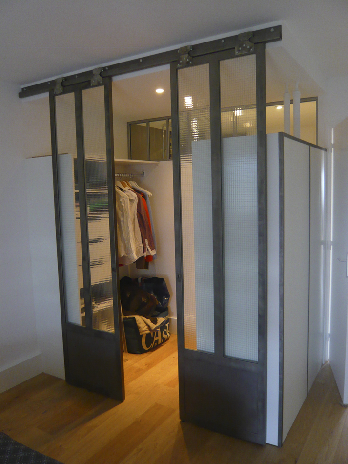 Verrière dressing à Paris en acier brut brossé Huilé.