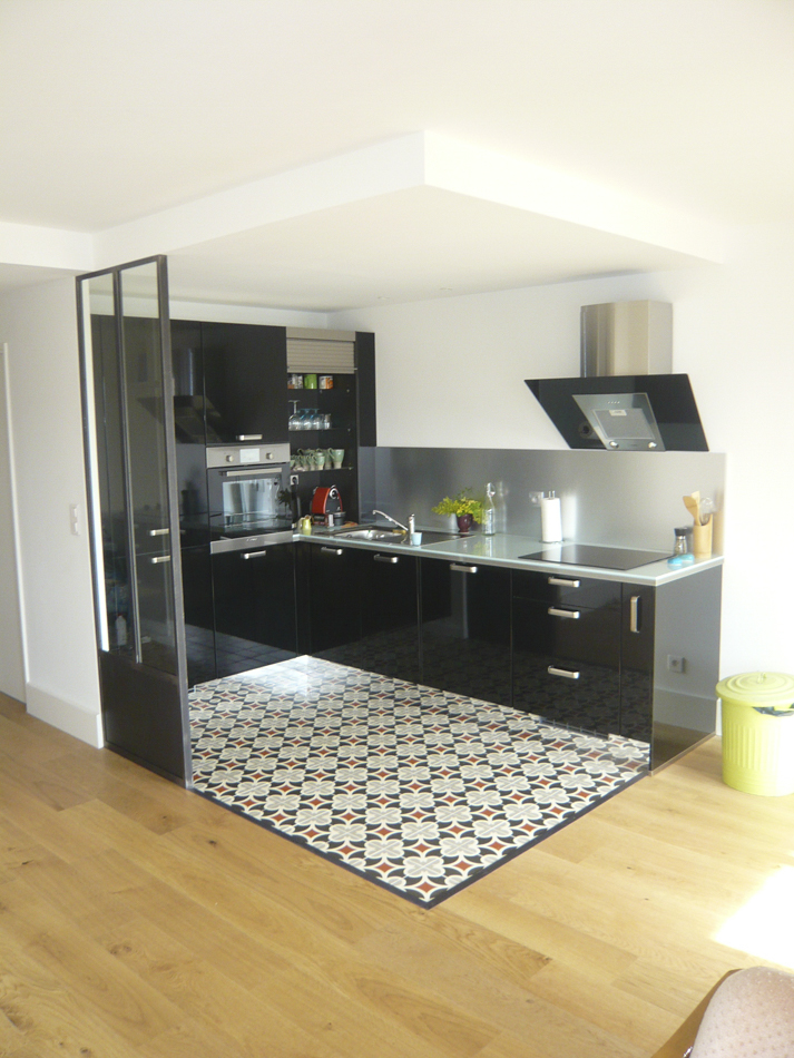 Verrière cuisine à Paris en acier Brut brossé huilé.